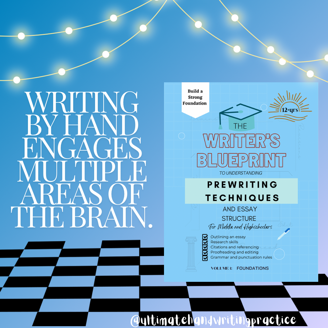 The Writer’s Blueprint to Understanding Prewriting Techniques and Essay Structure, Vol. 1, unlocks the FOUNDATION and ART of essay writing through engaging, hands-on practice. Designed for twelve-seventeen year olds this comprehensive guide takes them on a creative, thought-provoking journey through 8+ prewriting techniques, from the dynamic art of brainstorming to the precise craftsmanship of the final draft.